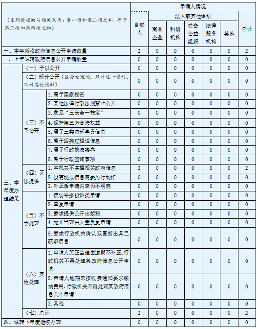 (二)依申请公开方面。2023年,我局共收到和处理政府信息公开申请件2件,包括本年新收到政府信息公开申请数量2件,上年转结政府信息公开申请数量0件,以上2件全部为本机关不掌握相关政府信息。