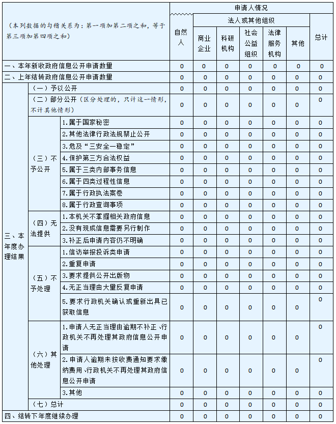 三、收到和处理政府信息公开申请情况