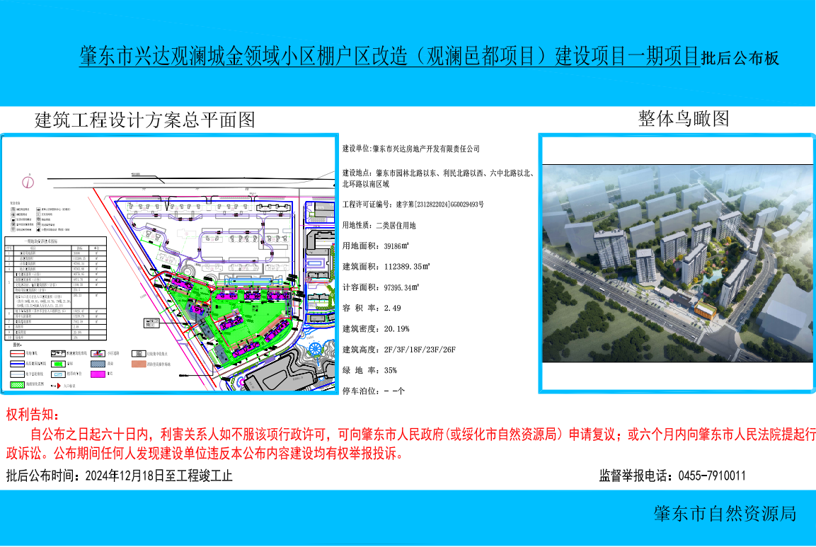 肇东市兴达观澜城金领域小区棚户区改造(观澜邑都项目)建设项目一期项目批后公布板