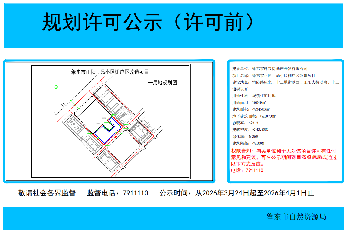 肇东市正阳一品小区棚户区改造项目规划许可公示(许可前)