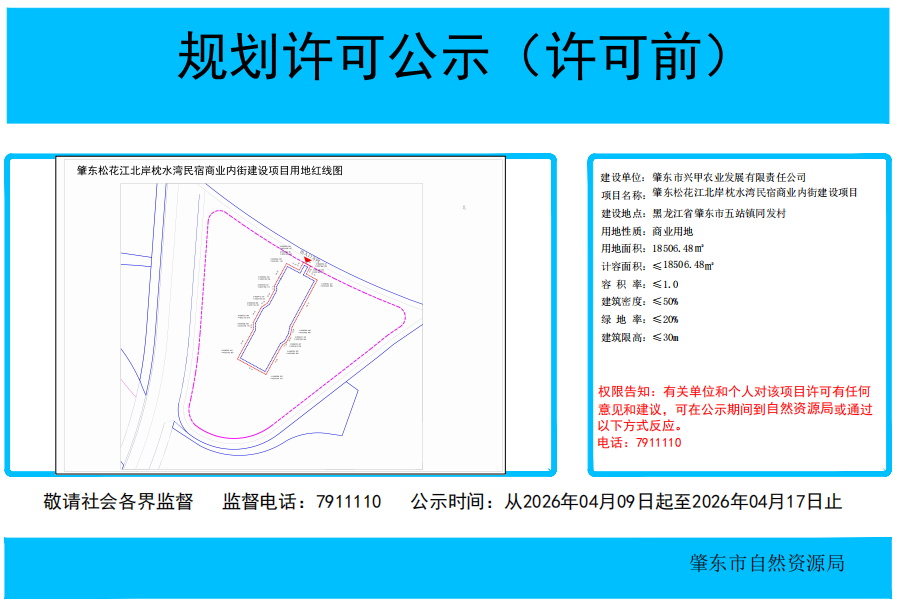 肇东松花江北岸枕水湾民宿商业内街建设项目规划许可公示(许可前)