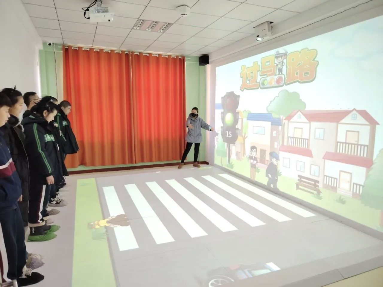 互动体验环节让安全知识真正入脑入心。学校设置模拟交通场景体验区,用道具搭建简易马路、斑马线及红绿灯,学生与家长通过角色扮演,全程模拟过马路、上下车流程;借助3D情景互动教室开展实景教育,以寓教于乐的形式深化大家对交通规则的认知,家长与孩子并肩参与,在实践中巩固安全知识。